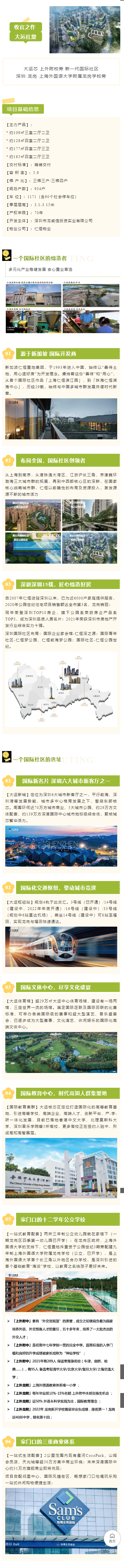 品牌保障:國(guó)際開(kāi)發(fā)商,仁恒置地集團(tuán)大運(yùn)新城:國(guó)際新名片,聚核城芯繁華活力優(yōu)質(zhì)教育:家門(mén)口教育,上外附校旁品質(zhì)生活:周邊超30萬(wàn)方集中商業(yè)